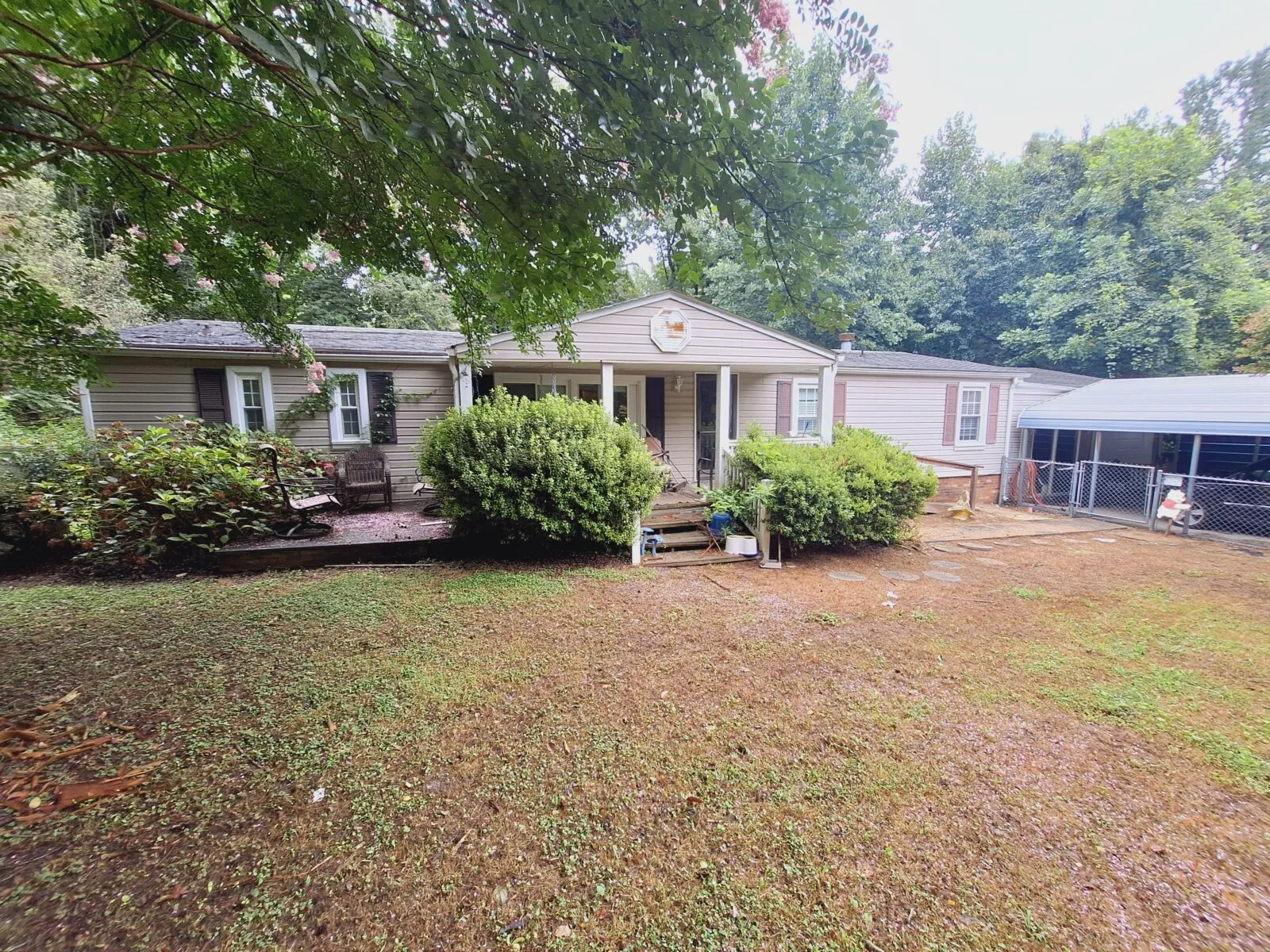 This home offers 3 bedrooms, 2 bathrooms, 1,344 Sq ft. Situated in Southeast Winston Salem, the property sits in a neighborhood of mostly manufactured homes and blends well with its surroundings.